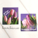 Открытка бирка Весняного настрою. Зроблено з любовью (тюльпаны) 50х45мм (5шт)