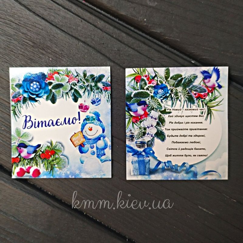 Открытка бирка З Новим роком і Різдвом Христовим! 90ммх50мм (5шт)