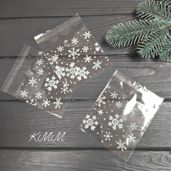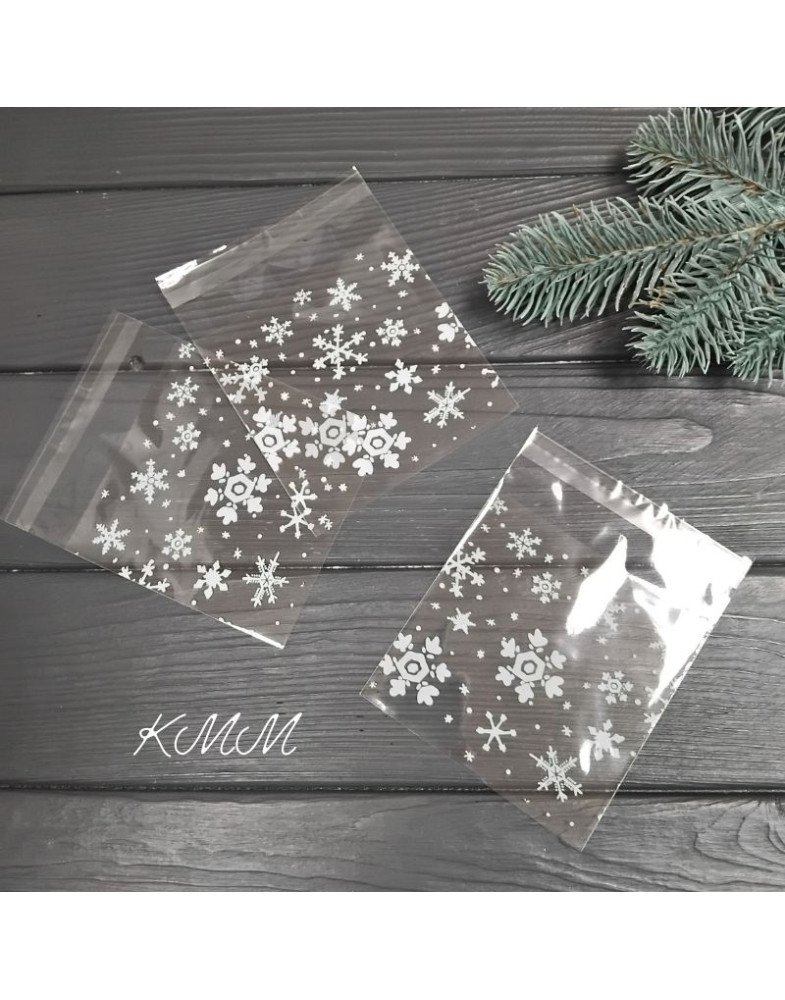 Пакет прозрачный "Снежинки" с клейкой лентой