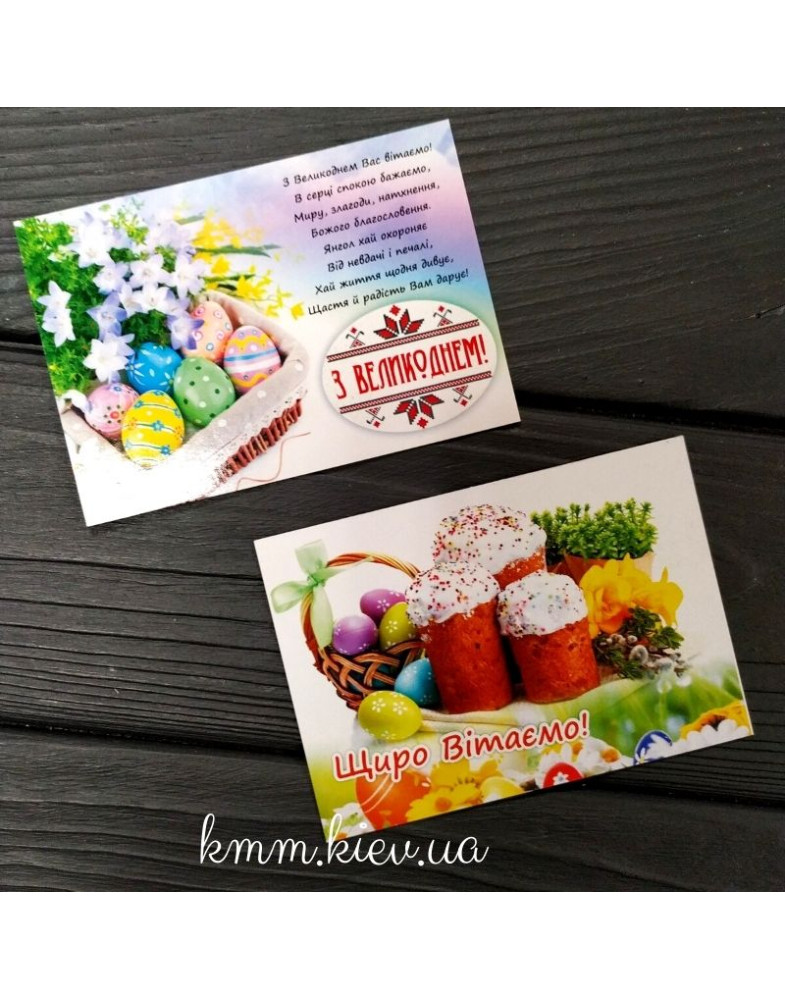 Открытка Щиро Вітаємо з Великоднем! 100х70мм Размеры 100х70мм Двусторонняя открытка. С ламинацией. Недорогим, качественным декором вы подчеркнете праздничное настроение и добавите прекрасных слов. Настройки экрана вашего устройства могут искажать цвет.