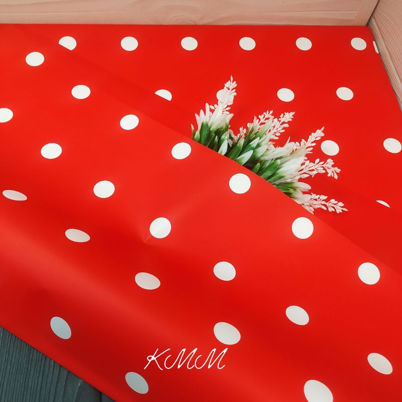 Пленка для цветов листовая Красная в белый горох 600х600мм