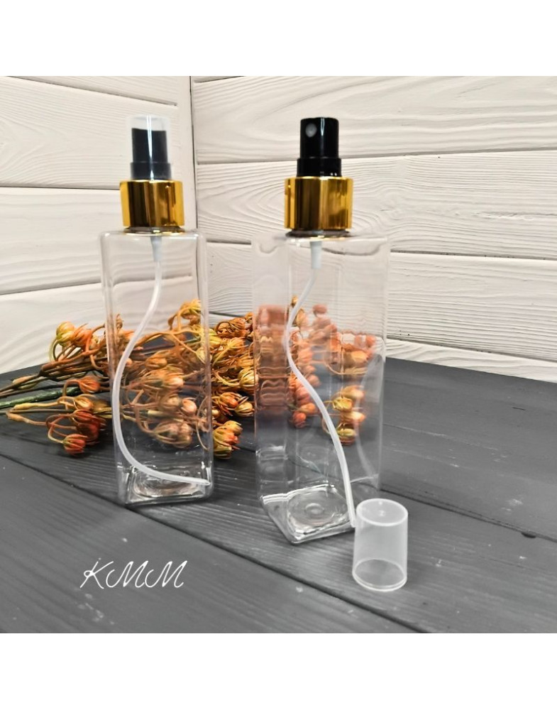 Флакон Боди прозрачный с алюминиевым спреем Золото - 250мл