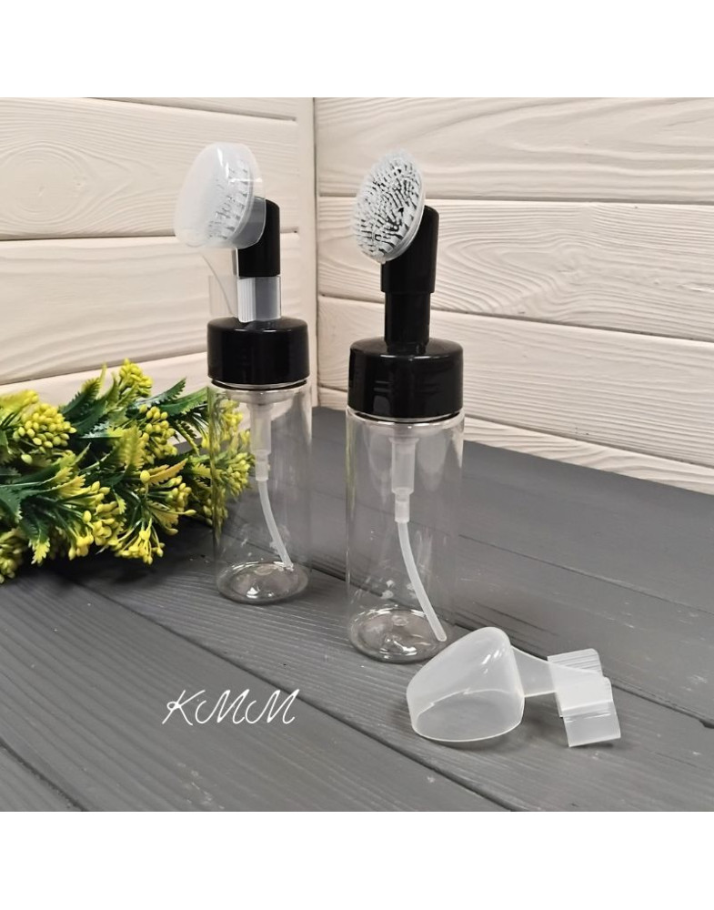 Флакон Фом с щеточкой и помпой, прозрачный, дозатор черный -150мл