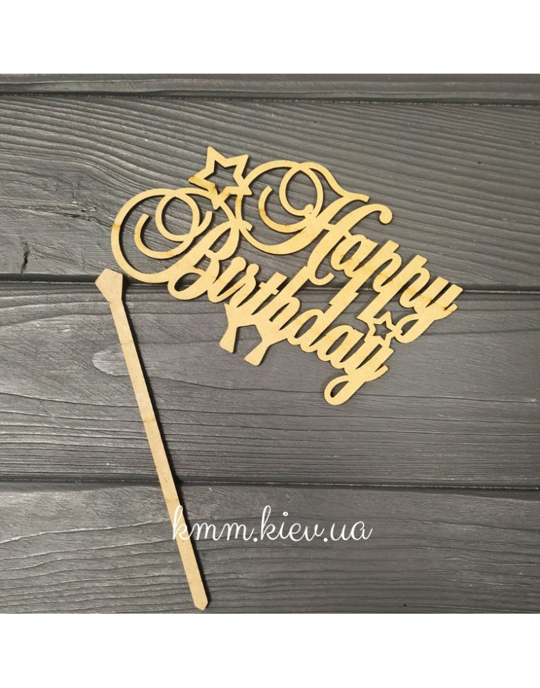 Теги: Топпер, Happy Birthday, 230х150мм, шпажка