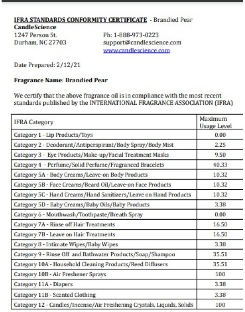Сертификат IFRA (Международной парфюмерной ассоциации) прикреплен.