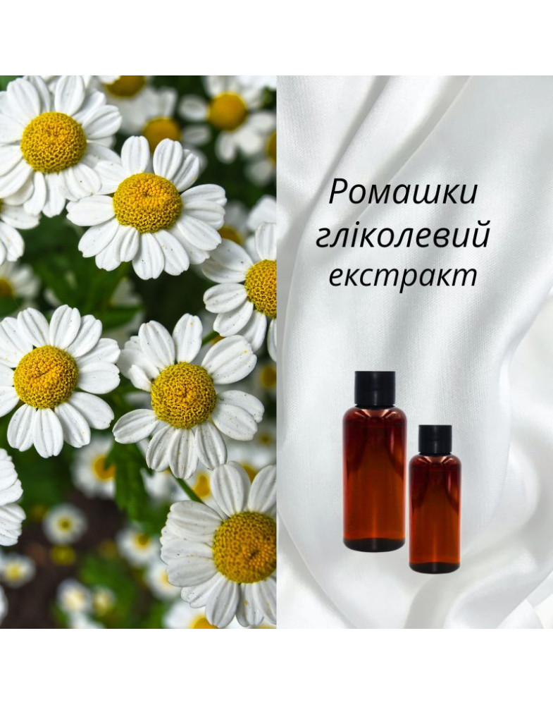 Ромашки гликолевый экстракт получают путем вымачивания наземной части в гликолевом растворе. В процессе экстракции все полезные вещества из растения поступают в раствор. Экстракт имеет высокую концентрацию.