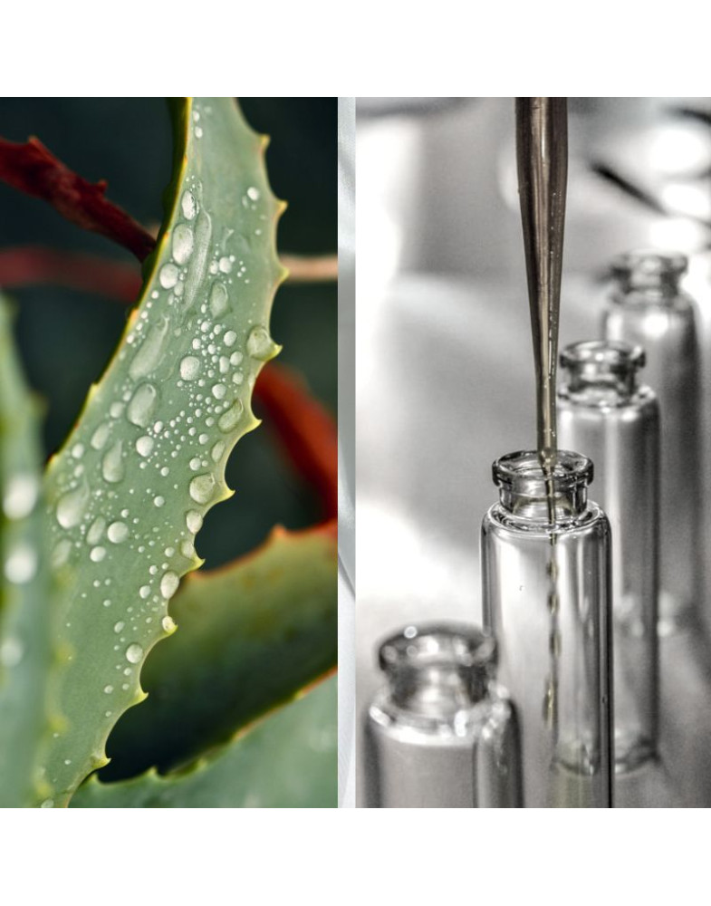 Алоэ содержит биологически активные вещества, ускоряющие обновление клеток. Гидролат способствует восстановлению повреждённой кожи, улучшает её барьерные функции, помогает при мелких воспалениях и пост-акне.