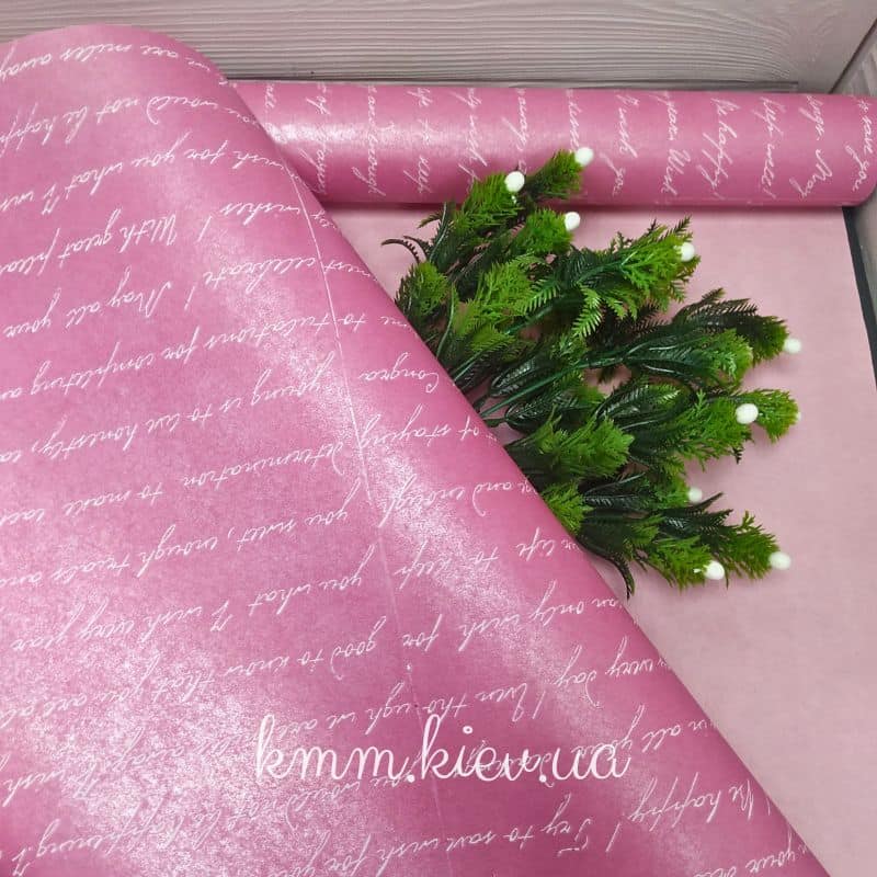 Бумага упаковочная Розовая с ванилью Письмо (на розовом фоне светло-желтый текст) 100смх70...