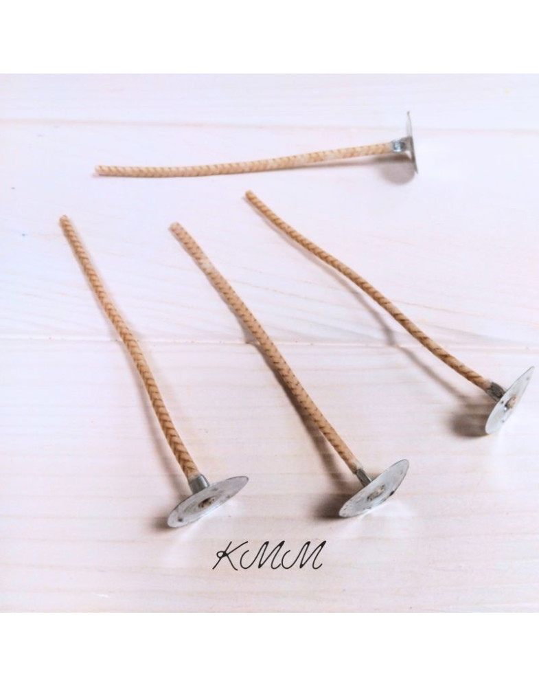 Фитиль 10см с держателем - провощенный плетеный хлопковый фитиль.