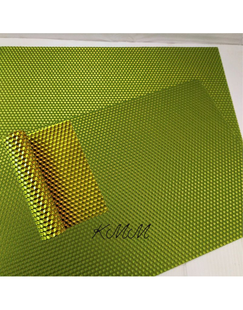 - Изготовлена в виде прямоугольных листов, методом прессования и раскатки воска, с нанесением оригинальной штамповки в виде сот.