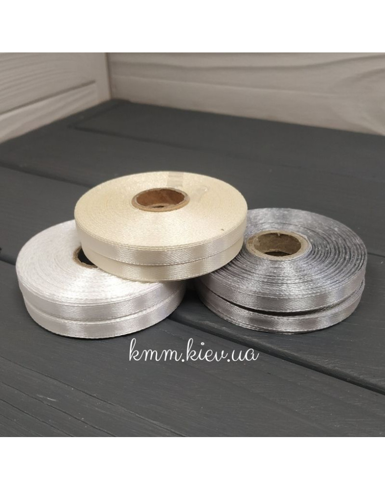 Теги: Стрічка атласна, 6мм, Білий, Сірий, Айворі, 23м рулон, Айворі