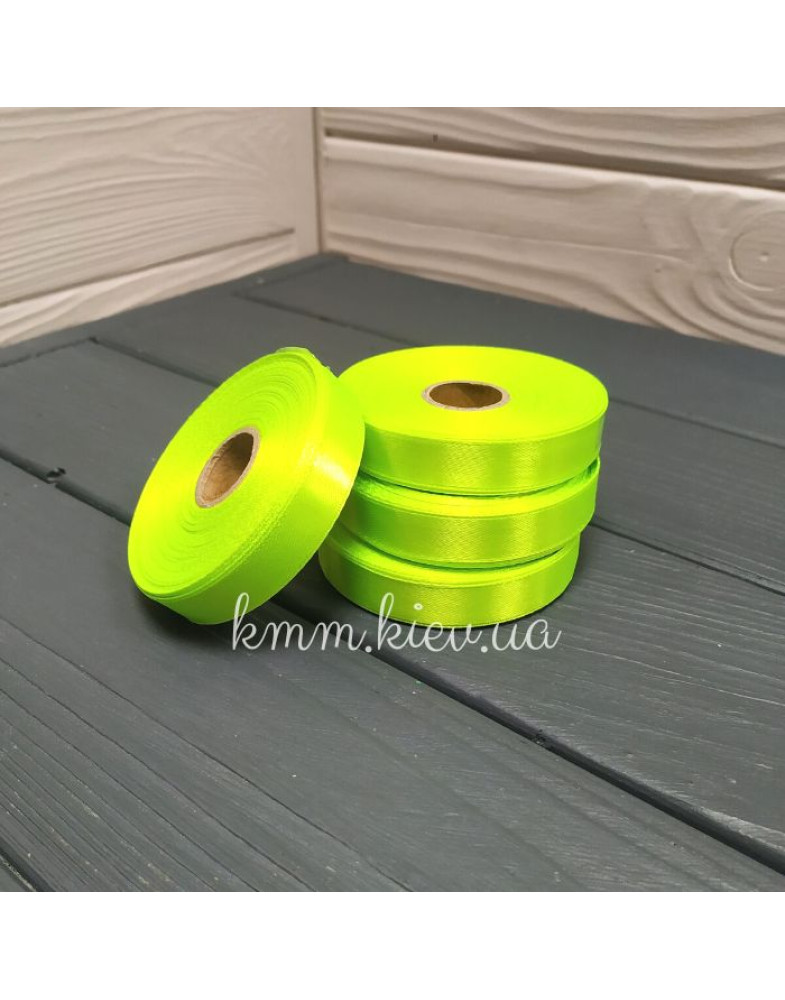 Стрічка атласна Лимонний неон 1,2см (1м, рулон 23м). - 1 м