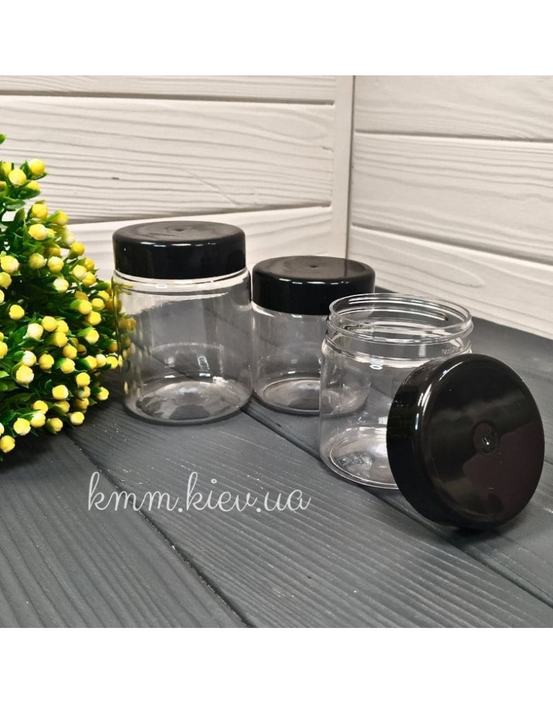Теги: Банка, пластиковая, чёрная крышка, 150мл, 250мл, 1 шт