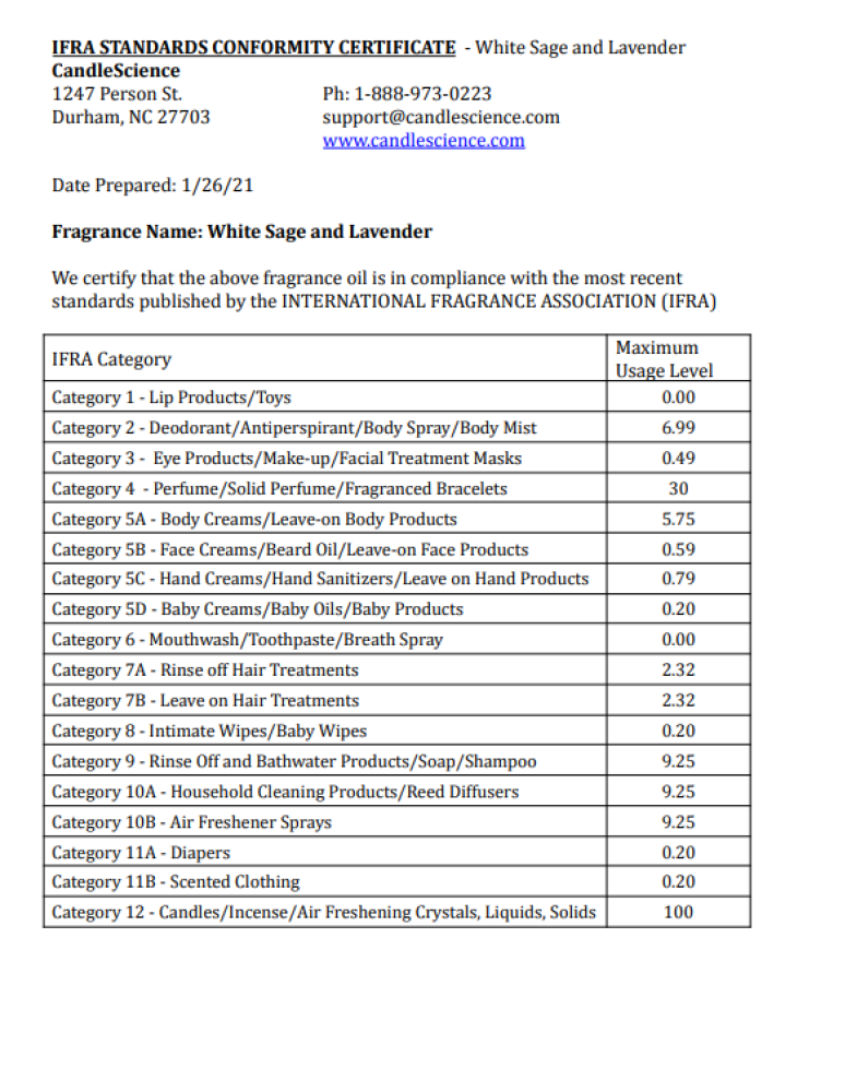 Сертифікат IFRA (Міжнародної парфумерної асоціації) прикріплено.