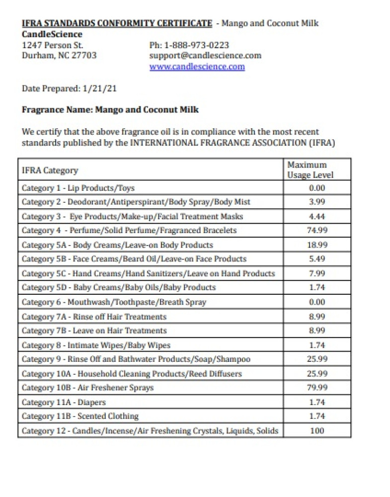 Віддушка Манго та кокосове молоко США (Сandlescience) 5 мл