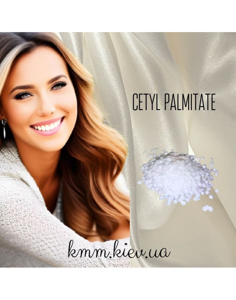 Зовнішній вигляд: білі воскоподібні гранули без особливого смаку чи запаху. Розчинність: в оліях при 60°С, легко в гарячому спирті, ефірних оліях, нерозчинний у воді. Температура плавлення: 43-53 ° С, легкоплавок, горючий. Емолент та вологоутримуючий косметичний компонент - незамінний при створенні доглядових засобів для сухої та зрілої шкіри, особливо корисний для догляду за зоною декольте, шиєю, руками. Розгладжує дрібні зморшки, робить шкіру більш пружною. Цетилпальмітат отримують з пальмової олії, це складний ефір цетилового спирту та пальмітинової кислоти. У ньому також містяться вільні спирти: цетиловий, октадециловий та ейкозиловий. Це натуральний, рослинний аналог спермацету, який отримують з китового жиру, але останнім часом рослинний спермацет більш популярний завдяки своєму рослинному походженню та стабільності в емульсіях. Цетилпальмітат - емолент і вологоутримуючий косметичний компонент. За своїм складом близький до шкірного жиру, завдяки чому добре живить, зволожує і регенерує. У косметиці робить шкіру здоровішою, щільнішою і еластичнішою. Незамінний компонент для сухої, зневодненої, зрілої шкіри. Основні властивості цетилпальмітату:- потужна зволожуюча дія,