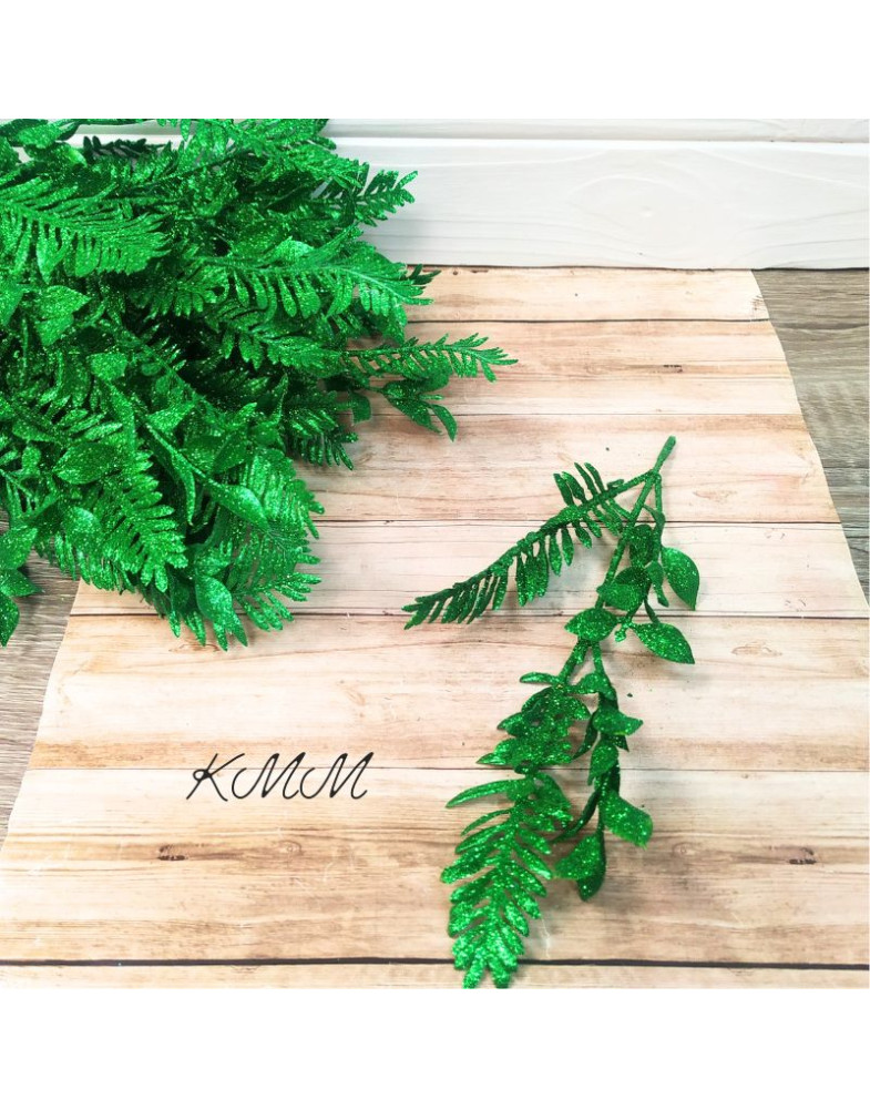 Теги: Гілка папороті, листя, гліттер, Зелена, 2 насадки