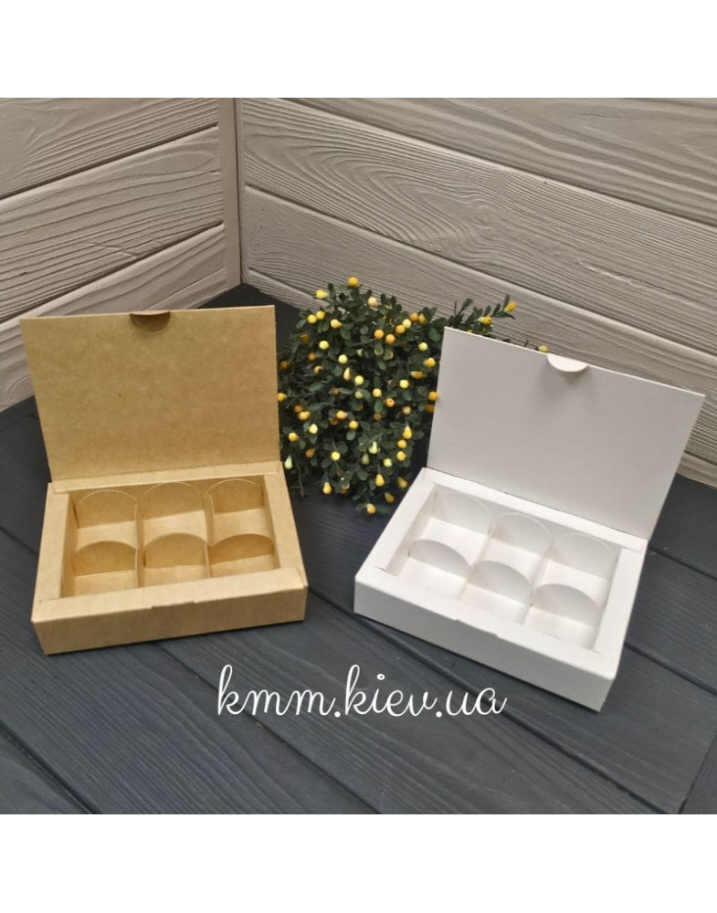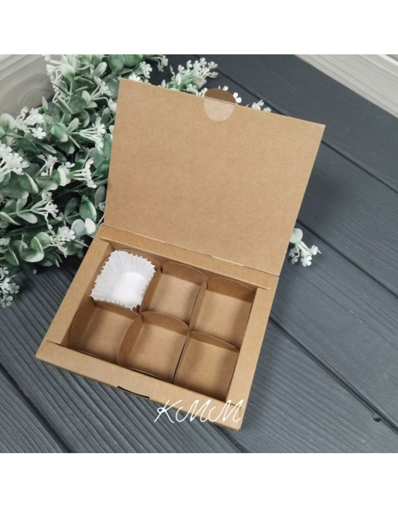 Теги: - Коробка- Під цукерки- Ложемент- 6 осередків- 110х145х30мм- Біла- Крафт