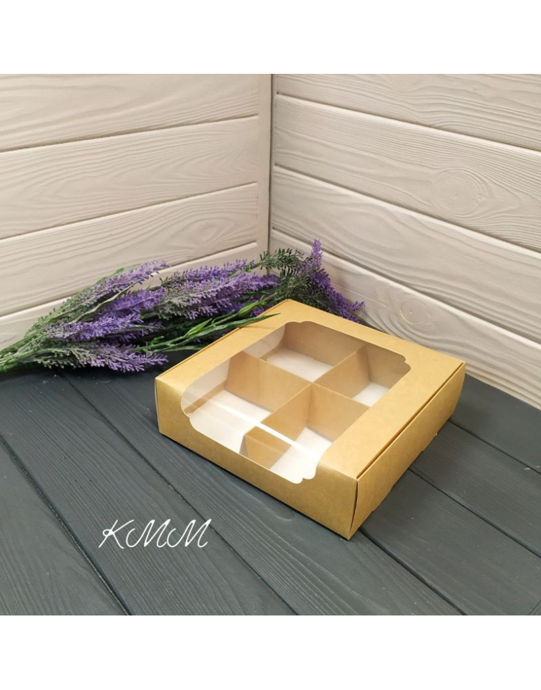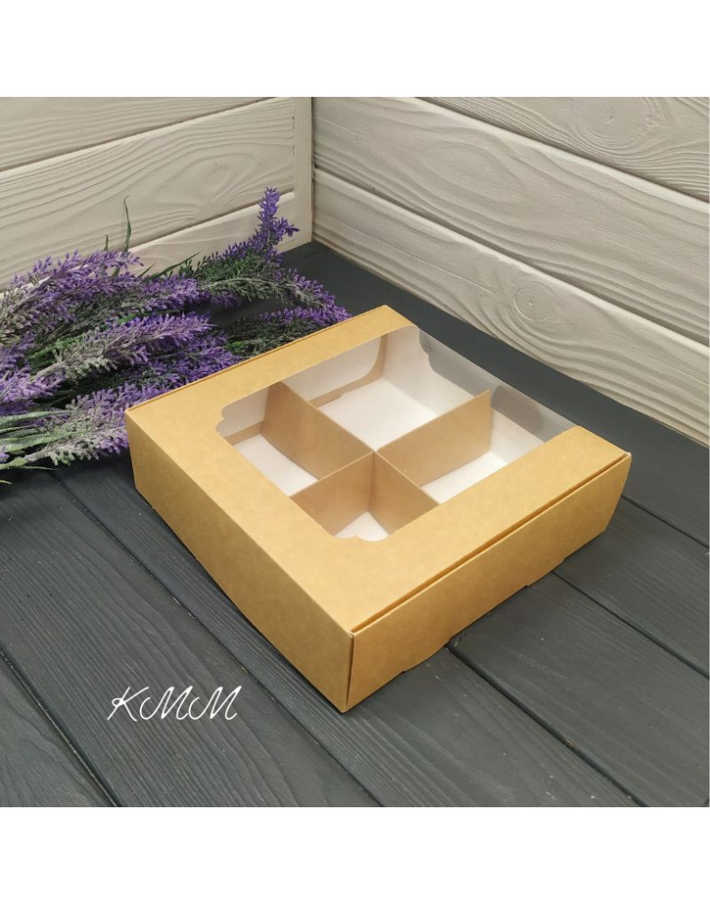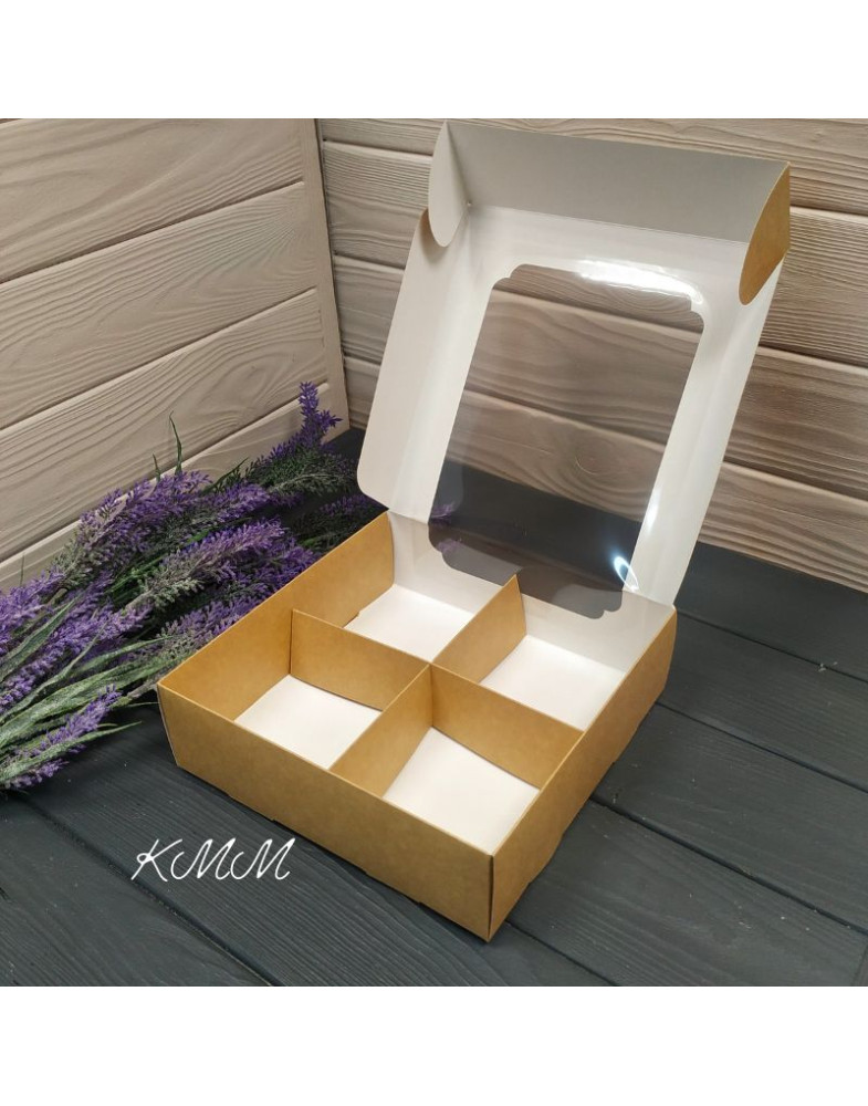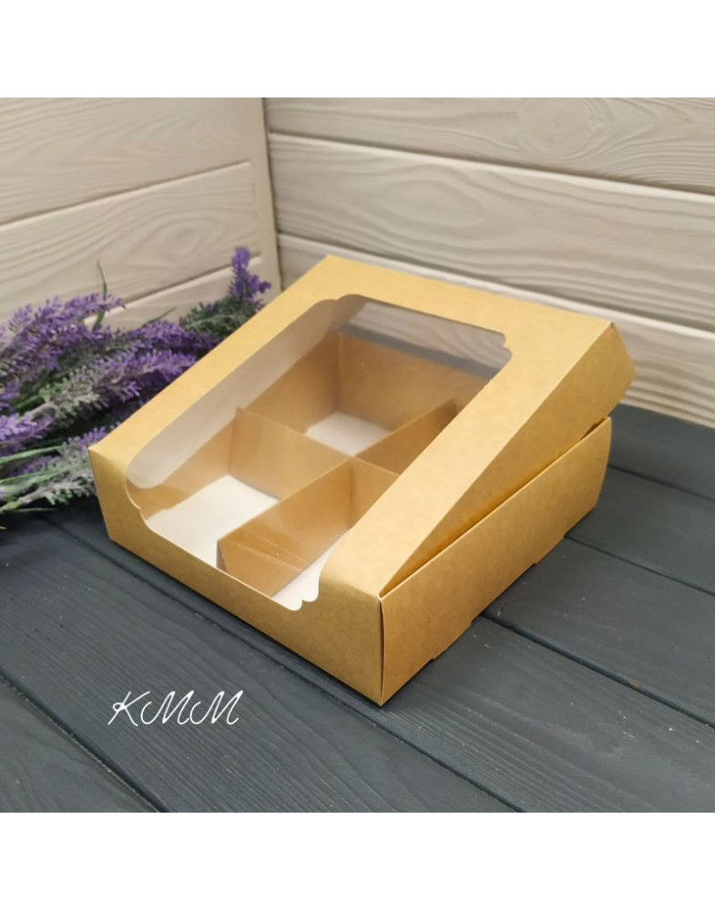 Коробка з панорамним вікном Крафт з ложементом 200х200х60мм